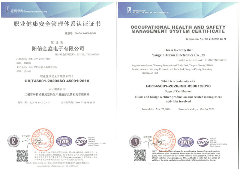• 职业健康安全管理体系认证证书