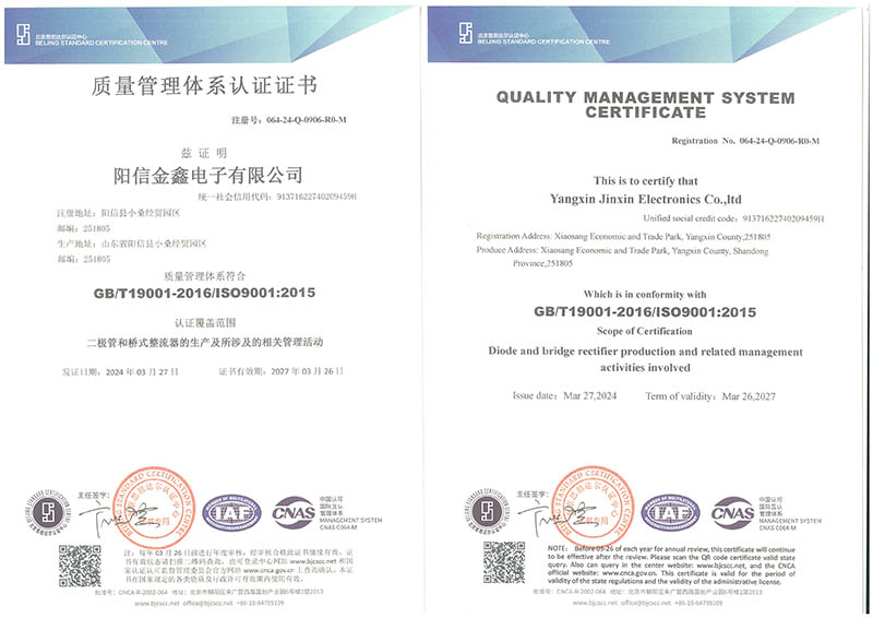 • 质量管理体系认证证书